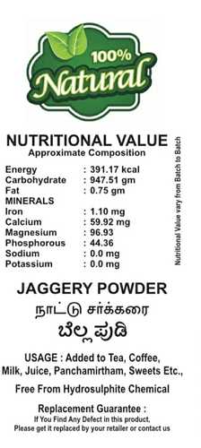 • Rich in micronutrients like iron, Potassium, Magnesium & Calcium its help Strengthen Bones and Teeth • Jaggery Powder made from 100% organic sugar cane.processed from Traditional way to produce jaggery powder. • jaggery powder is a Naturally best solution for indigestion and Constipation • its Chemical Free, can use for all age group. FSSAI CERTIFIED. • NO GMO, NO CHEMICALS, NO PESTICIDE.